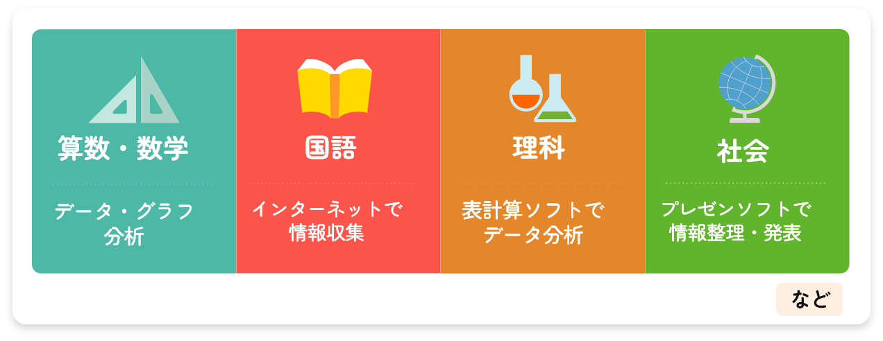 学校の授業での活用はもちろん、その習得・育成を通して「 社会を生き抜く力」を身につけます。